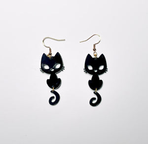 Playfull Cat Earrings in Black Acrylic