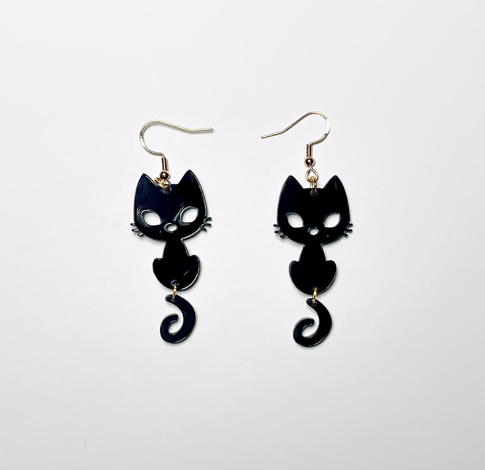 We created these cat earrings in black acrylic to blend playful design with a clean, elegant look – and we have to say, the result turned out absolutely charming! The sweeping tails and cut-out eyes give the cats a lively expression, perfect for any cat lover or anyone who enjoys adding a unique touch to their jewelry collection.