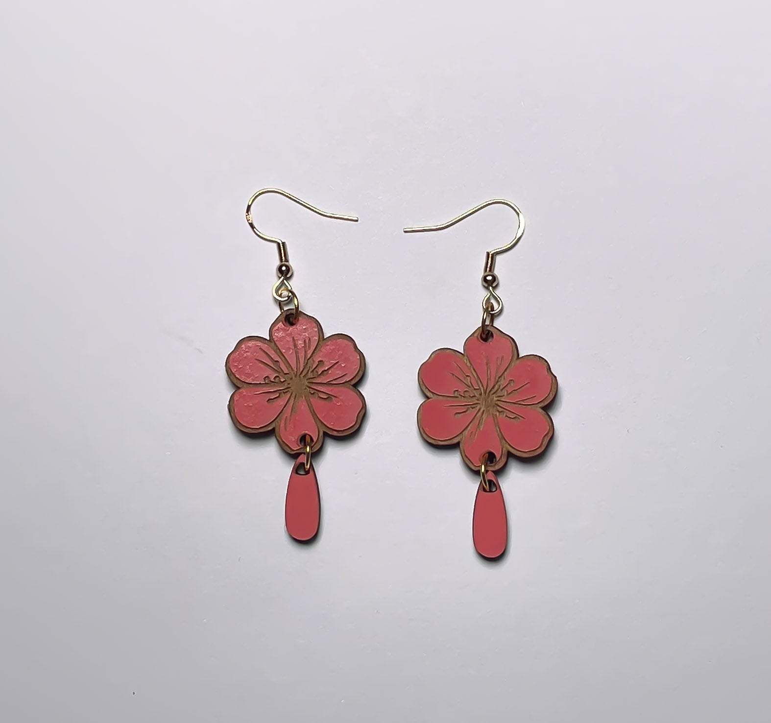 Home Wooden Pink Earrings Inspired by Japanese Cherry Blossoms