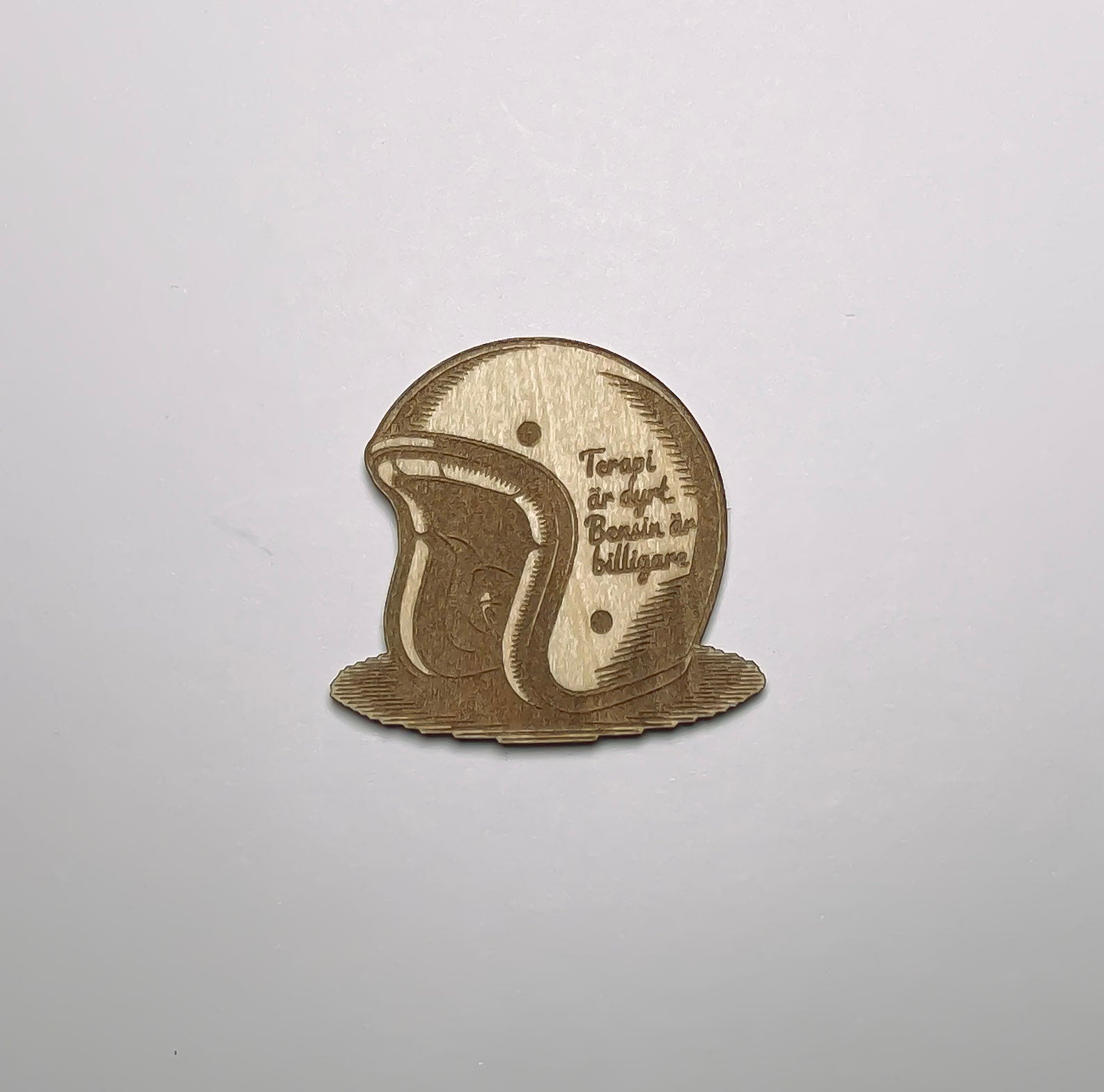 En snygg magnet med hjälmmotiv, perfekt för hojåkaren.