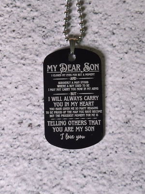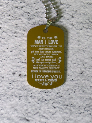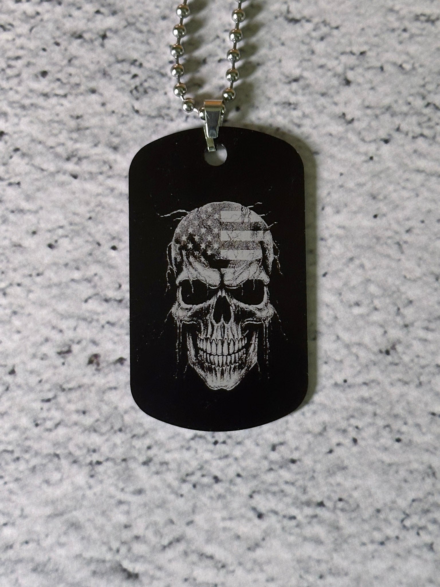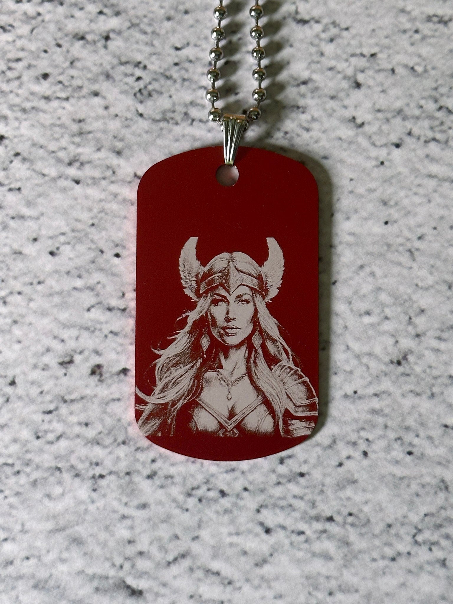 Upptäck våra graverade dog tags – ett personligt smycke som passar lika bra som gåva som till din egen stil. Brickan är tillverkad i aluminium med en matt yta som gör gravyren tydlig och hållbar. Kedjan är i rostfritt stål för lång hållbarhet och bekväm användning.